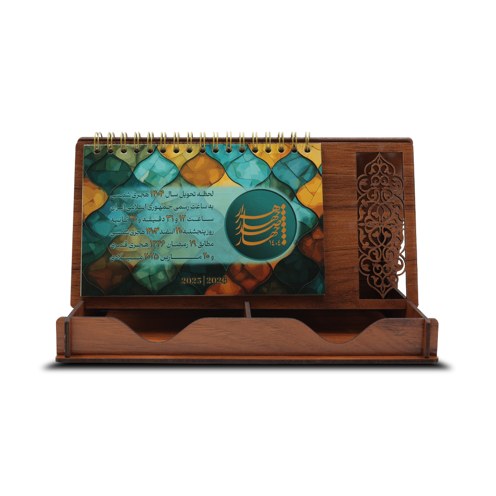 با ترکیب طراحی خیرهکننده، کارایی و کیفیت ساخت، این تقویم یک ابزار روزمره و یک هدیه ماندگار برای مشتریان و همکاران شما خواهد بود.مناسب برای شخصی سازی سازمان ها و شرکت ها که برای سال نو هدیه ای زیبا و کاربردی مد نظر دارند