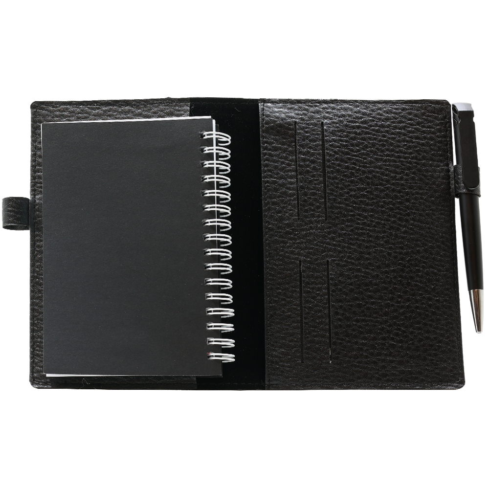 کیف چرم فلوتر دارای جا کارتی همراه دفتر چه یادداشت سیمی و خودکار .