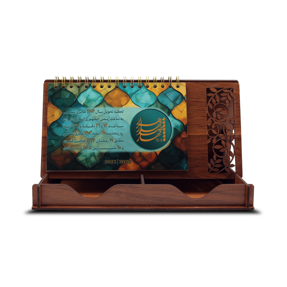 با ترکیب طراحی خیرهکننده، کارایی و کیفیت ساخت، این تقویم یک ابزار روزمره و یک هدیه ماندگار برای مشتریان و همکاران شما خواهد بود.مناسب برای شخصی سازی سازمان ها و شرکت ها که برای سال نو هدیه ای زیبا و کاربردی مد نظر دارند