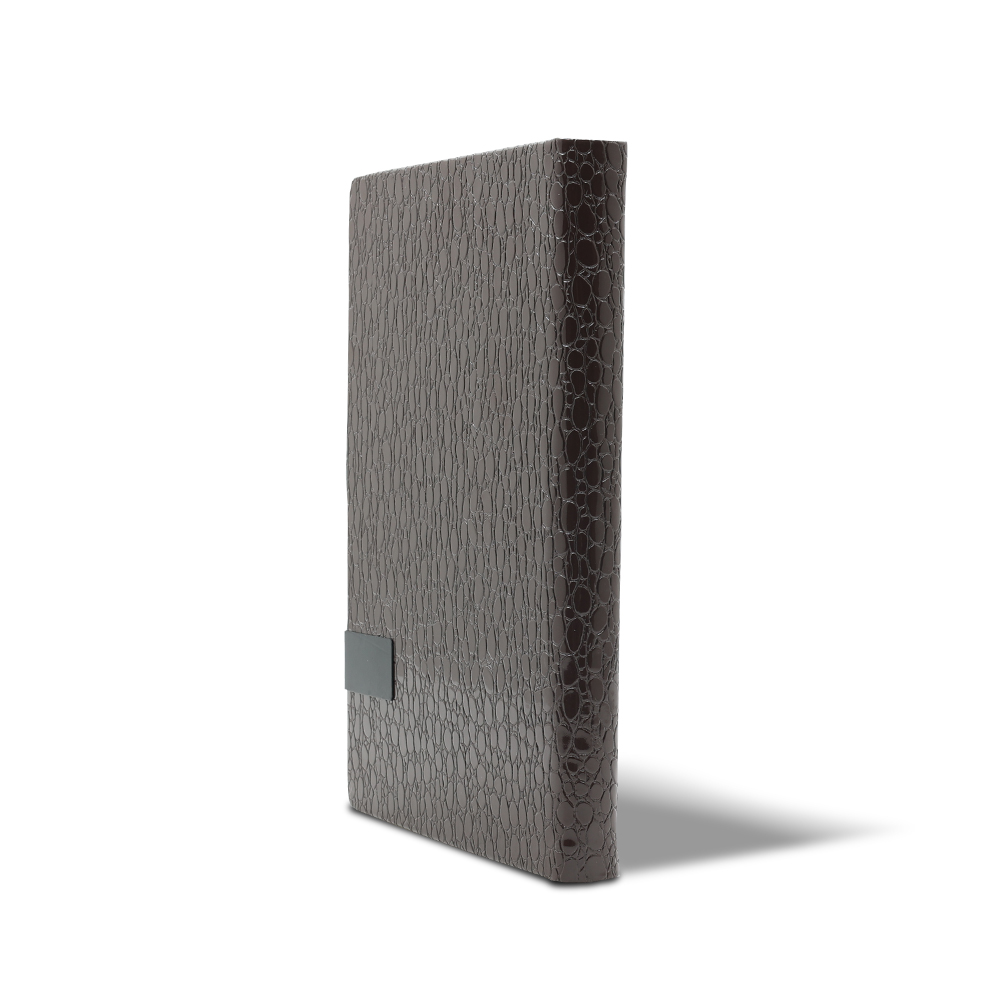- جلد سالنامه از چرم ورنی طرح سنگ که با طراحی خاص خود، محصولی تک رنگ و بسیار لوکس ایجاد کرده است.