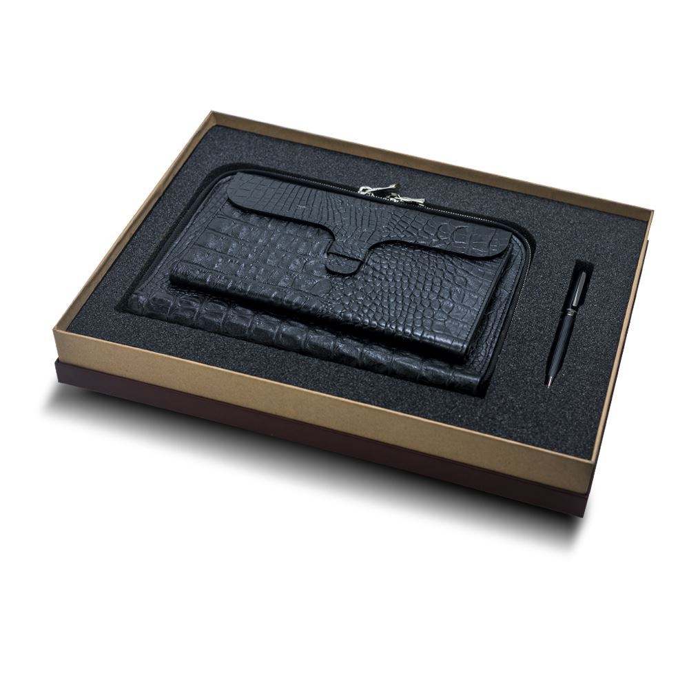 داخل این کیف فضای مناسبی برای نگهداری مدارک مهم، پاسپورت، دسته چک، خودکار و دفترچه وجود دارد. همچنین، این ست همراه با یک خودکار نفیس عرضه میشود که بر جذابیت آن افزوده است. لازم به ذکر است که جلد دفترچه از جنس غیر چرمی بوده، اما هماهنگی کاملی با چرم طبیعی کیف دارد و به جذابیت و تکامل این مجموعه کمک میکند.