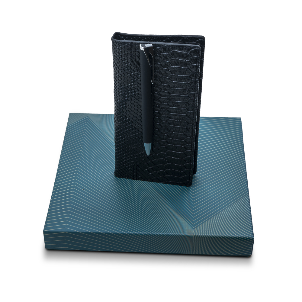 ست تبلیغاتی کارشناسی که شامل کیف پول چرم پیتون، خودکار، و جعبه هاردباکس است، یک گزینه استثنایی برای تبلیغ برند یا خدمات میباشد.